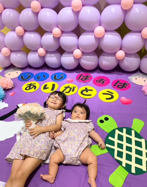 おじいちゃんやおばあちゃんに写真を送って下さいね。