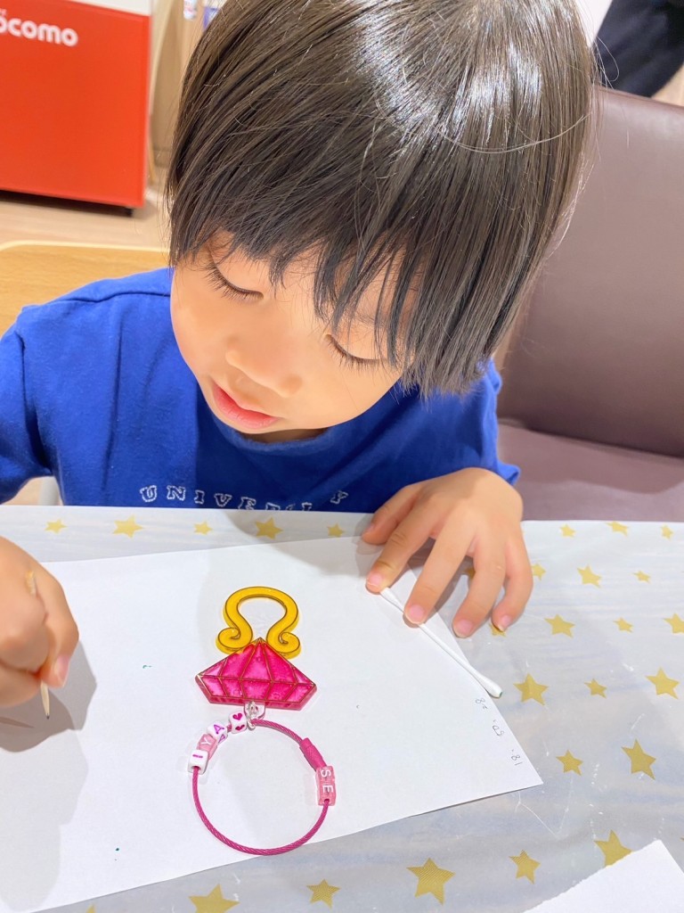 色を塗ってSDG’sなキーホルダーを作ってもらいました。