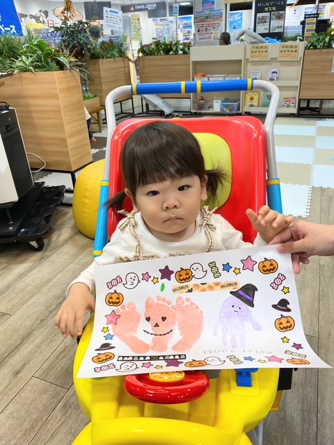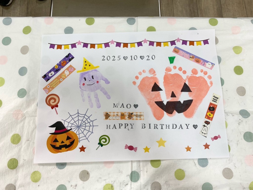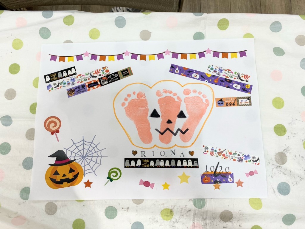 ハロウィンをテーマに手形足形アートを作ってもらいました。