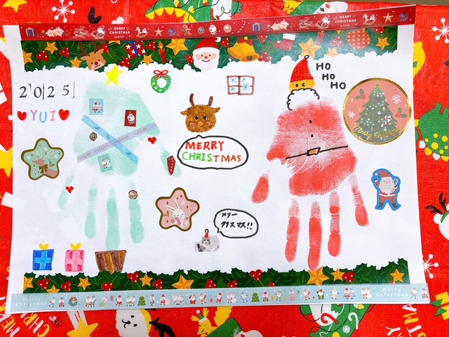 手形足形をうまくトナカイやサンタさんに仕立ててもらいました。