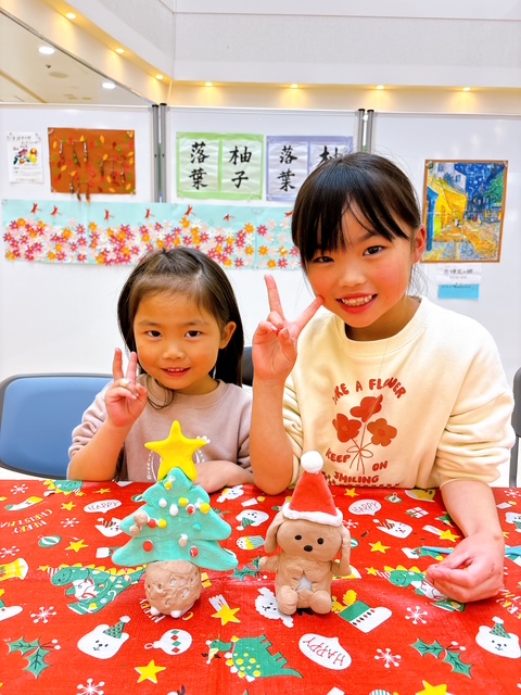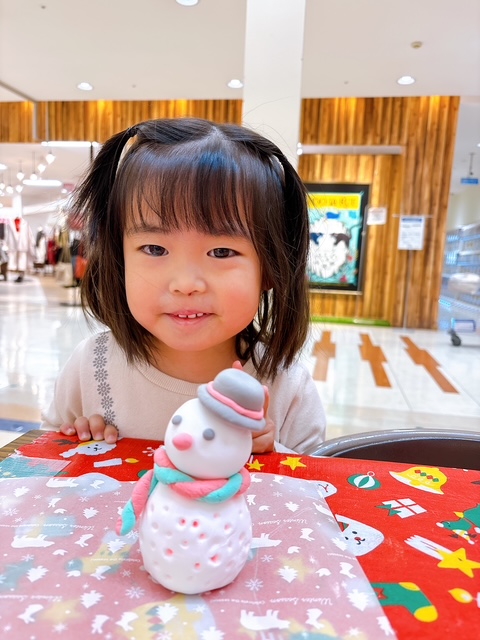 粘土でクリスマスツリーやスノーマン、トナカイなどを作り