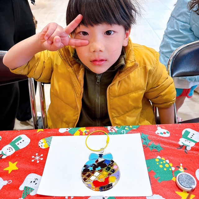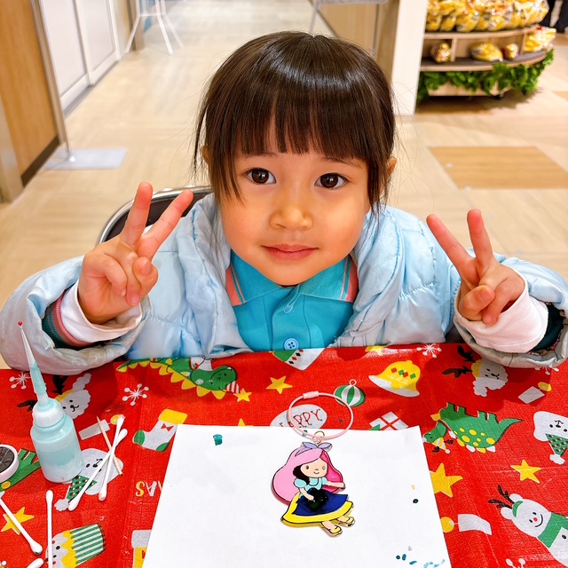 色を塗ってSDG’sなキーホルダーを作ってもらいました。