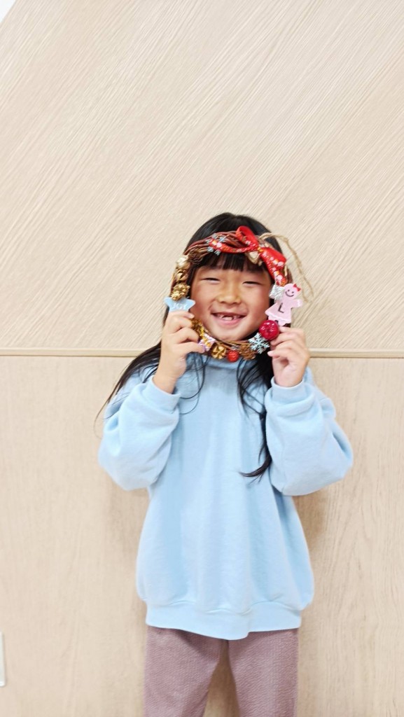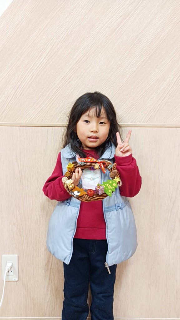 たくさんの飾りをつけて、クリスマスリースを作ってもらいました♪