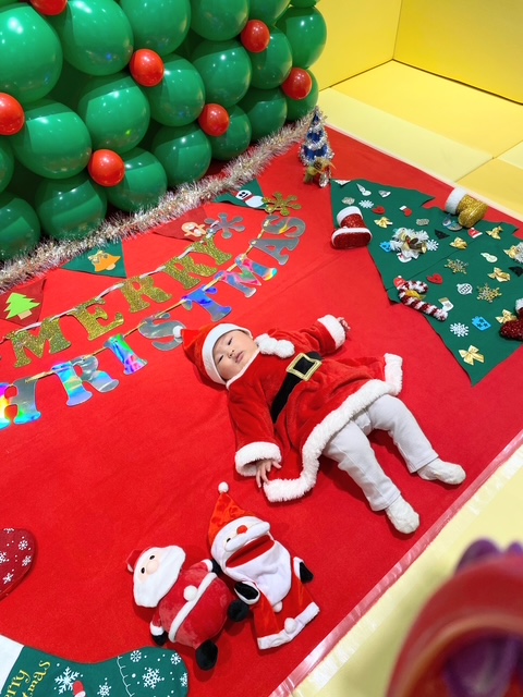 クリスマスを背景にしたブースでねんねアートを開催しました★