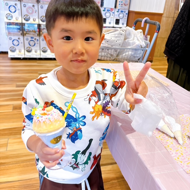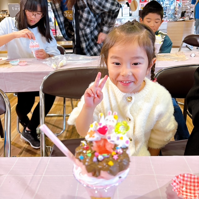 その上にスクイーズをのせてパフェを作ってもらいました。