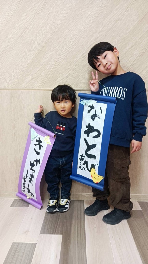 子供たち思い思いの言葉を書初めしてもらい